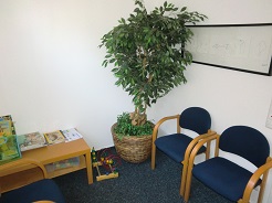 Im Eingangsbereich befindet sich ein kleiner Wartebereich sowie die Rezeption.